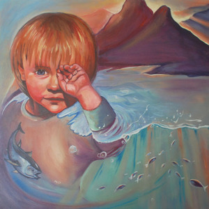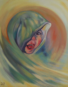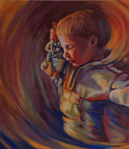2015Olieverf portret van een jongetje dat met wasgoed speelt
