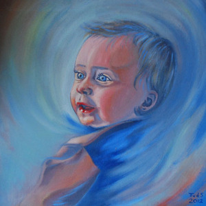 2015Olieverfportret van een jongetje met blauwe ogen