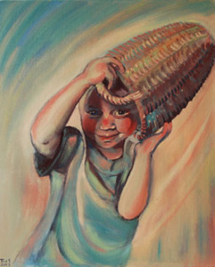 2017Olieverf van een jongetje dat met een mand speelt